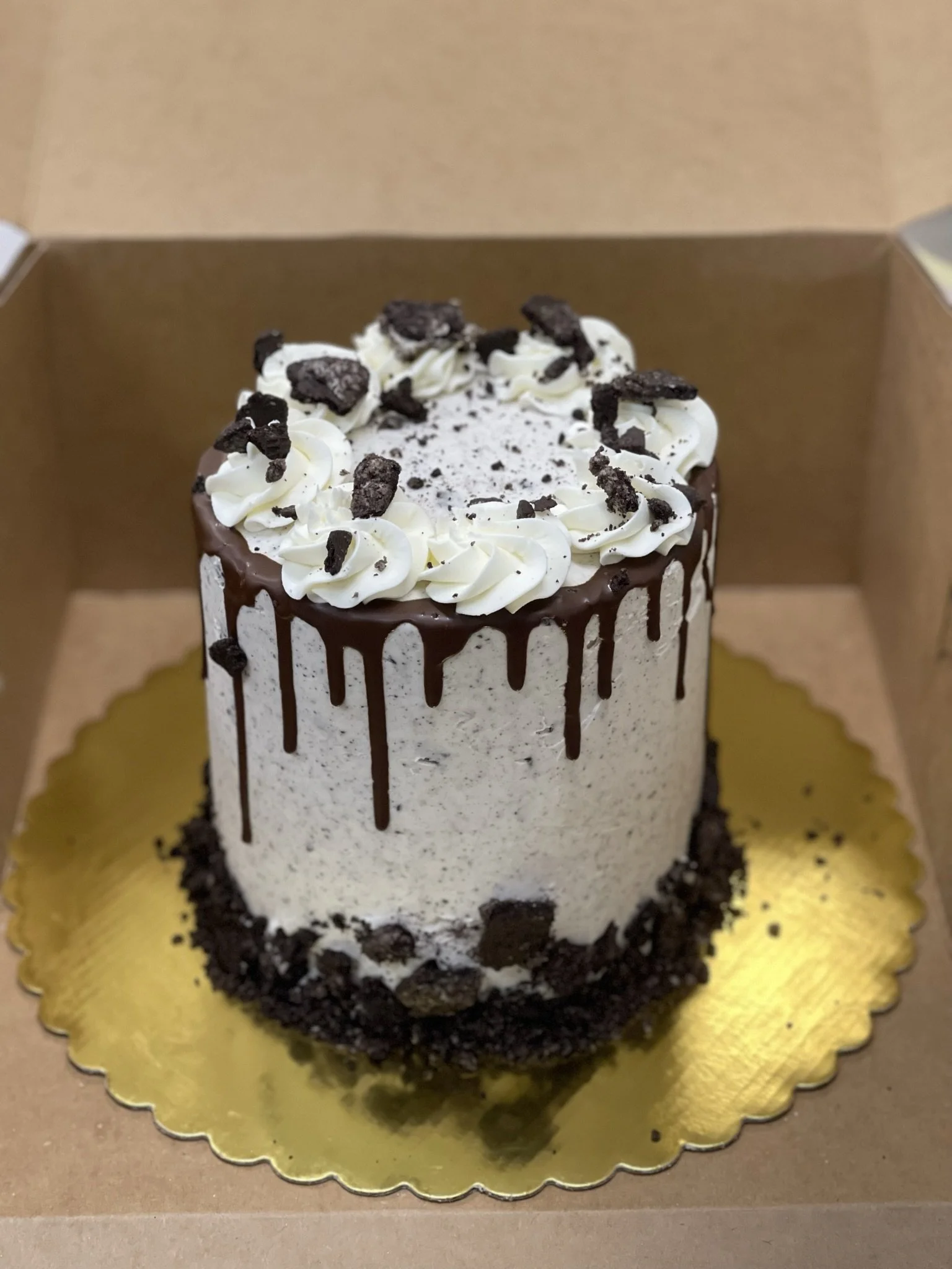 Calling all Cookies and Cream fans because we have the cake of call cakes for you! 3 layers of your cake choice filled and coated with Oreo buttercream - ganache drip - crushed cookie border - buttercream swirls