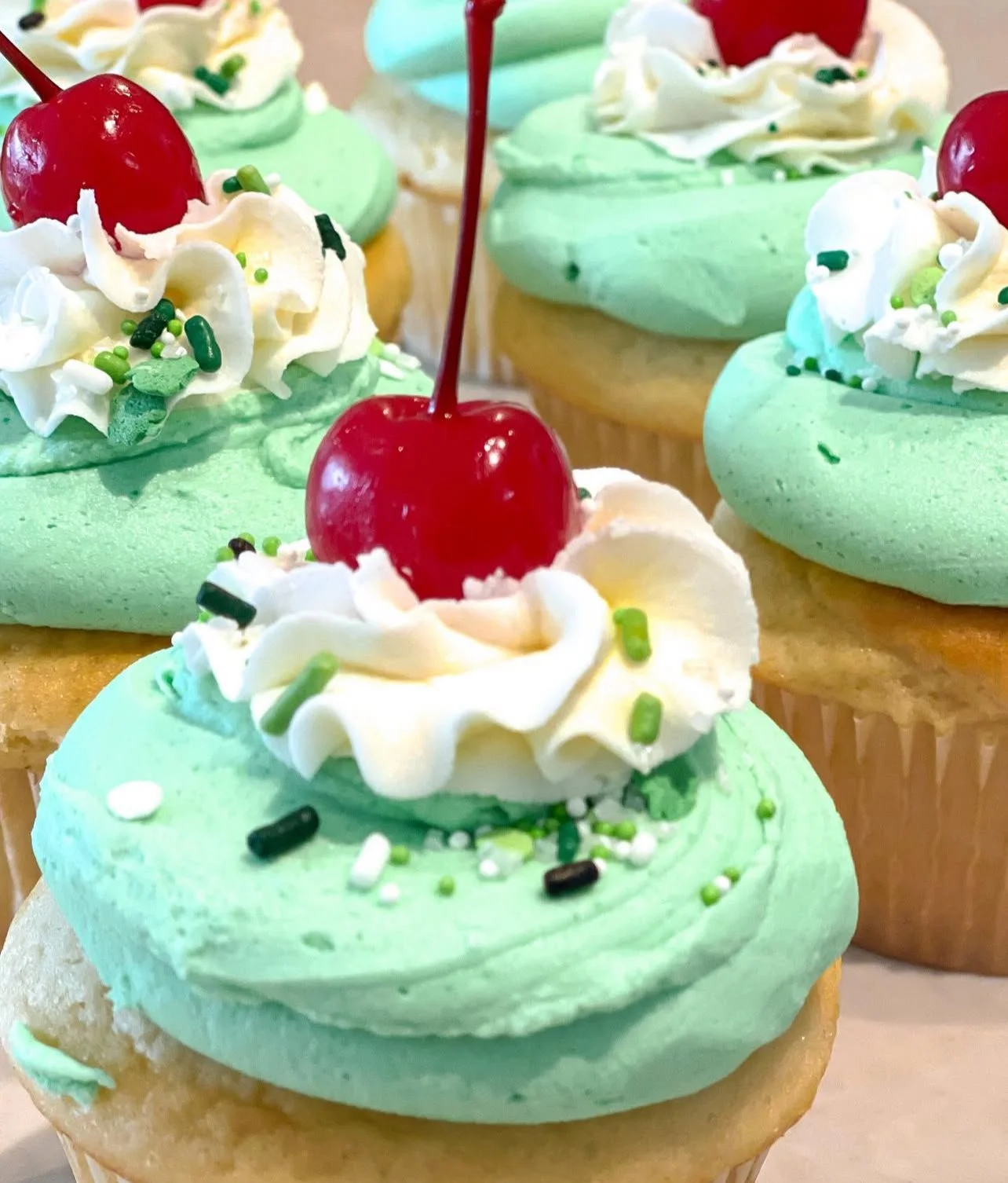 Weekly Menu › Shamrock Shake Shamrock Shake $4.00 mint funfetti cupcakes with white chocolate ganache center then topped with mint buttercream. mint funfetti cupcakes with white chocolate ganache center then topped with mint buttercream. Add To Cart Added!